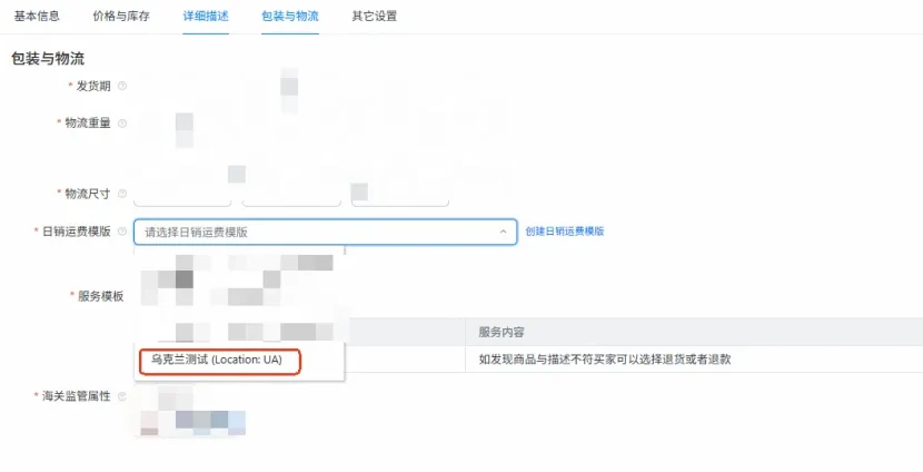 5.保存并关联商品:设置完成后保存模板。在发布或编辑商品时,在“日销运费模板”处选择您刚刚创建好的 “Meest乌克兰专线”模板即可。